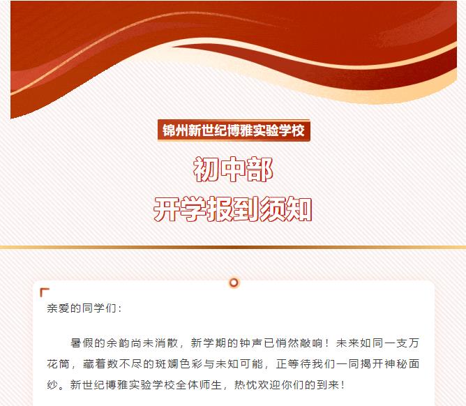 初中部开学报到须知-通知公告-锦州新世纪博雅实验学校