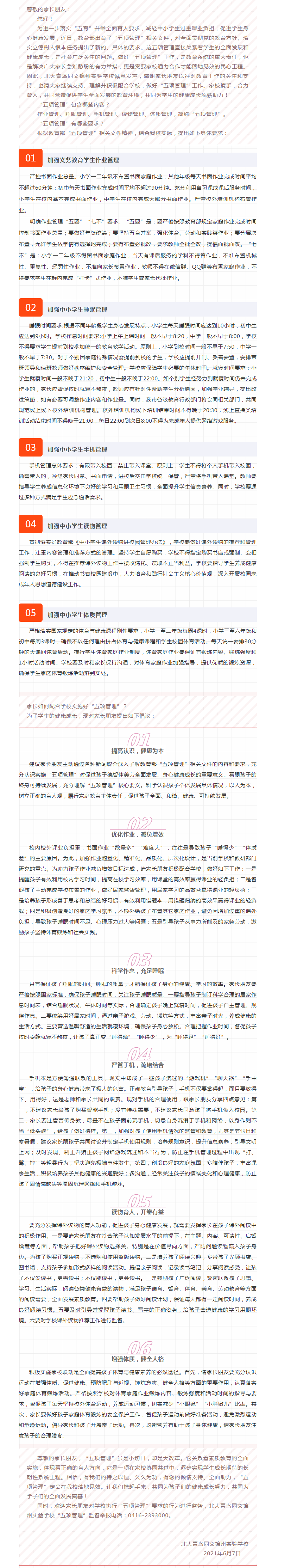北大青鸟同文锦州实验学校关于落实“五项管理”工作致家长朋友的一封信