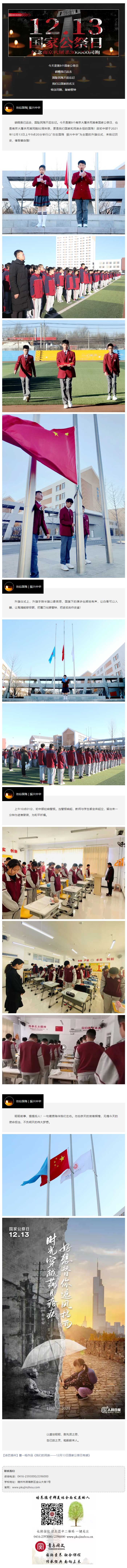 硝烟虽已远去,国耻民殇不应忘记。今天是第8个南京大屠杀死难者国家公祭日,也是南京大屠杀死难同胞82周年祭,更是我们国家和民族永恒的国殇!故初中部于2021年12月13日上午9点20分举行以“勿忘国殇 振兴中华”为主题的升旗仪...