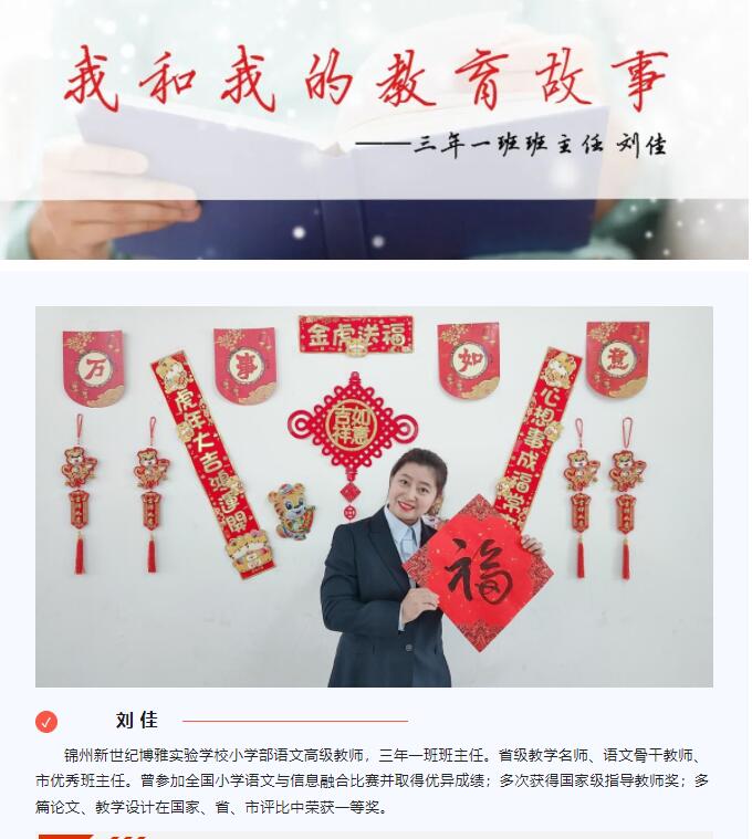 锦州新世纪博雅实验学校小学部语文高级教师,三年一班班主任。省级教学名师、语文骨干教师、市优秀班主任。曾参加全国小学语文与信息融合比赛并取得优异成绩;多次获得国家级指导教师奖;多篇论文、教学设计在国家、省、市评比...
