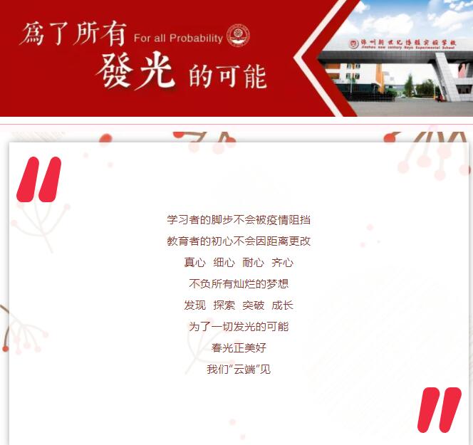 为保证教学的高效率和高质量,在网课正式开始之前,初中部全体教师召开了专项会议。考虑到学生的视力情况,老师们提前准备了必要的纸质学案、习题等材料,并提醒学生离校时将教材、教辅等带回家,做好充足的准备。会上,高校长...