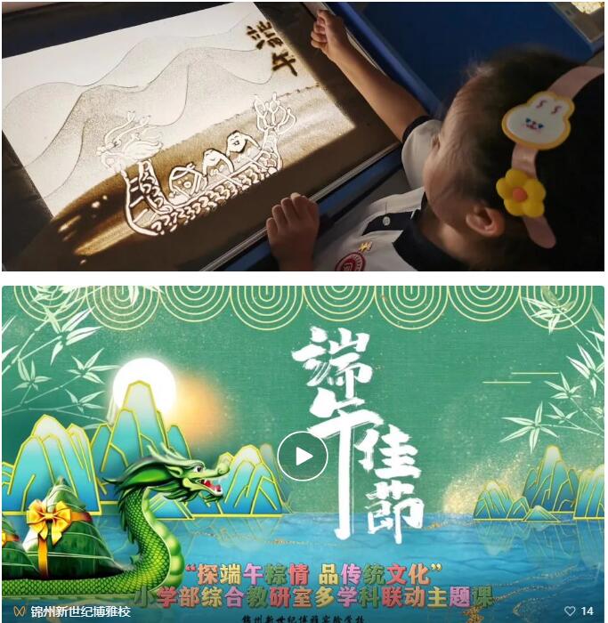 榴花妖艳迎端午,粽叶飘香话千古。作为首个入选世界非物质文化遗产的中国传统节日,端午节凝结着中华民族优秀的传统文化。为了引导学生更好地继承和弘扬中华优秀传统文化,5月30日-6月2日,锦州新世纪博雅实验学校小学部综合教研室开展了“探端午粽情 品传统文化”多学科联动端午主题课程,改变以往端午当天紧锣密鼓的花式活动,将端午文化融入课程建设,激发了孩子们了解中华民族传统文化的热情,并取得了良好的收效。请您点击文字或是下方图片查看详细内容。