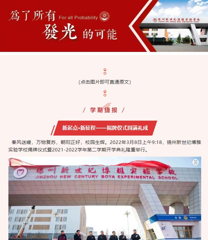 揭牌仪式由多位领导嘉宾出席,与学校师生代表共同见证这一重要的历史时刻。在激动人心的倒计时中,市政府领导、教育局领导、集团领导、学校领导、家长代表及学生代表一起按下象征着崭新开始的启动杆,新校名正式亮相。请您点击文字或是下方图片查看详细内容。