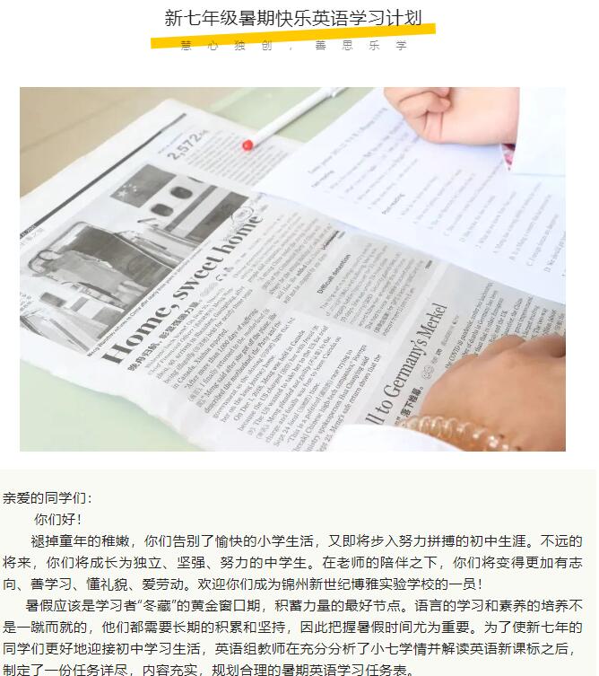 慧心独创,善思乐学——新七年级暑期快乐英语学习计划