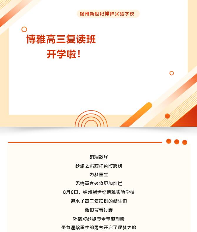 一载拼搏·一生辉煌——博雅复读班正式开学啦!-媒体报道-锦州新世纪博雅实验学校