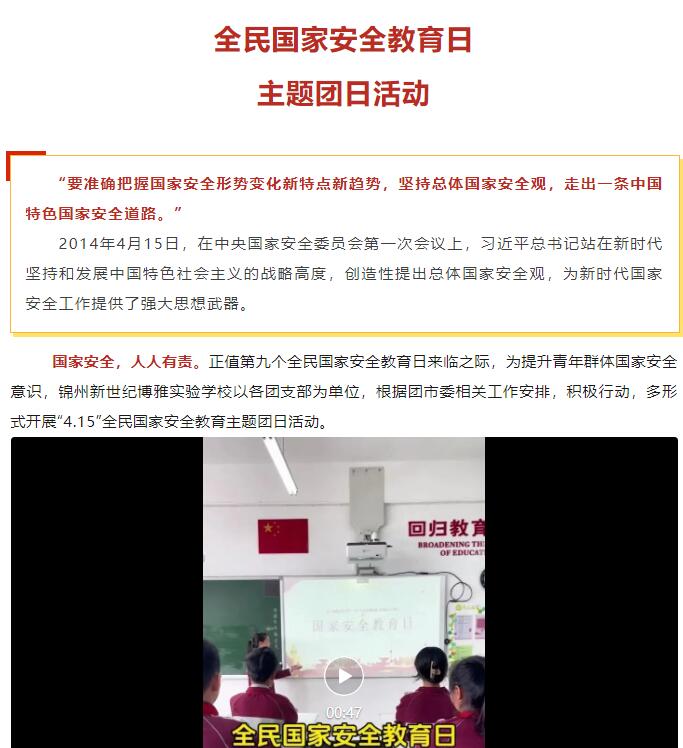 我校开展全民国家安全教育主题团日活动-媒体报道-锦州新世纪博雅实验学校