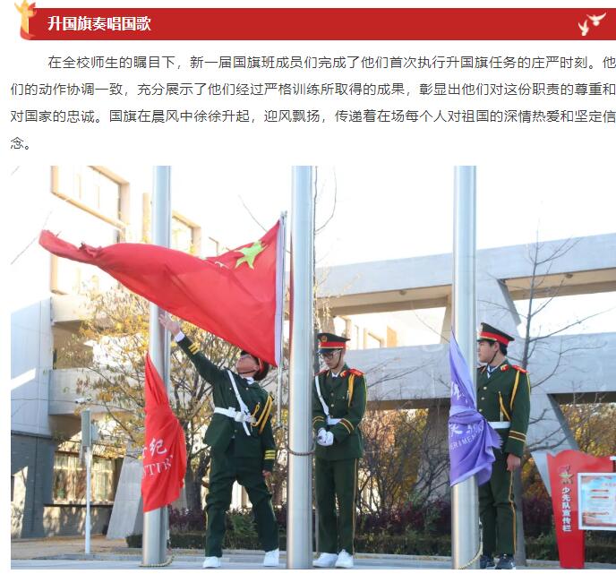 红旗飘扬护荣光 薪火相传铸辉煌 | 初中部国旗班换届仪式圆满举行-媒体报道-锦州新世纪博雅实验学校