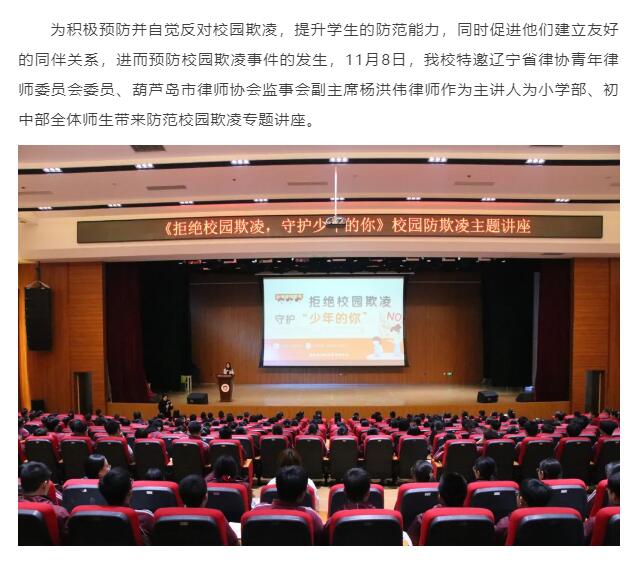 拒绝校园欺凌 守护少年的你丨我校举行预防校园欺凌专题讲座-媒体报道-锦州新世纪博雅实验学校